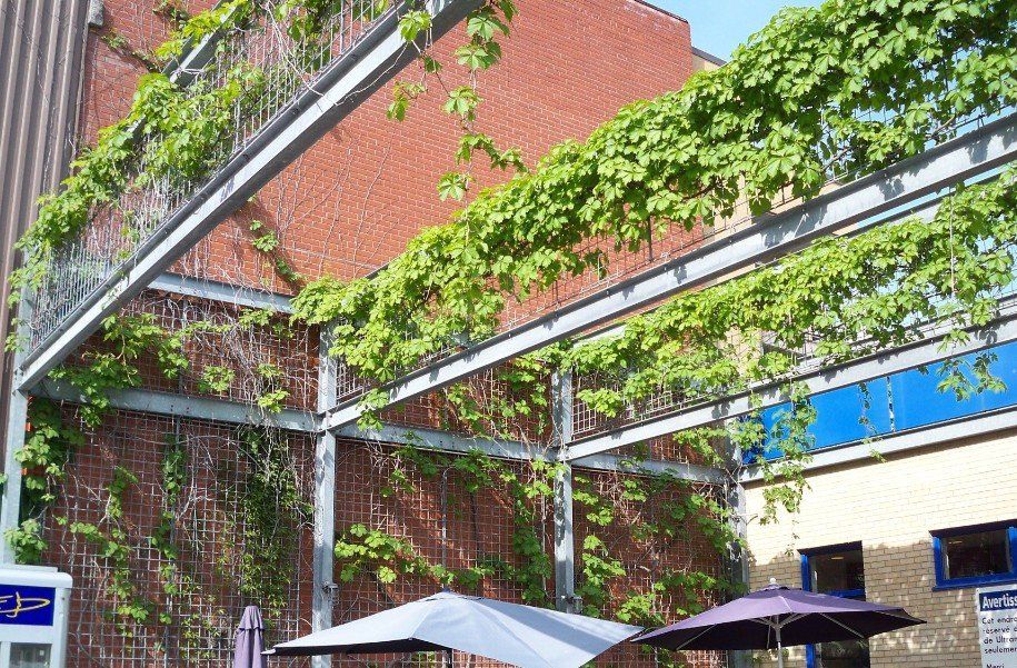 Structure en acier galvanisé des balcons et des escaliers des façades est et ouest des quatre étages; les différents éléments ont été unis par assemblage mécanique.